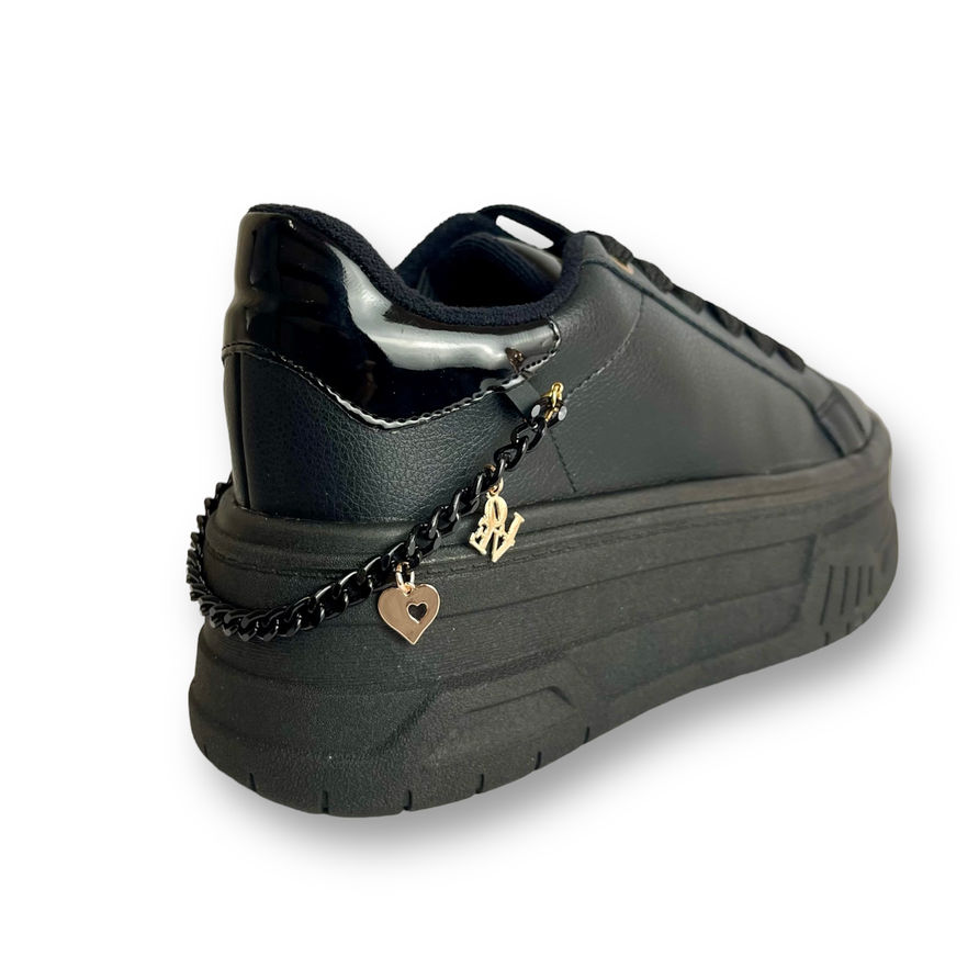 Estos Tenis ShadowFlex son el complemento perfecto para cualquier outfit. Con su diseño negro clásico y un pequeño accesorio que los hace únicos, estos tenis lucen bien con todo. Además de ser estilosos, son increíblemente cómodos y perfectos para usar todo el día. Con su versatilidad y facilidad de combinación, estos tenis son un must-have en cualquier closet. Disponible solo en color negro. Material: Sintético.